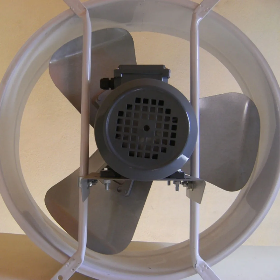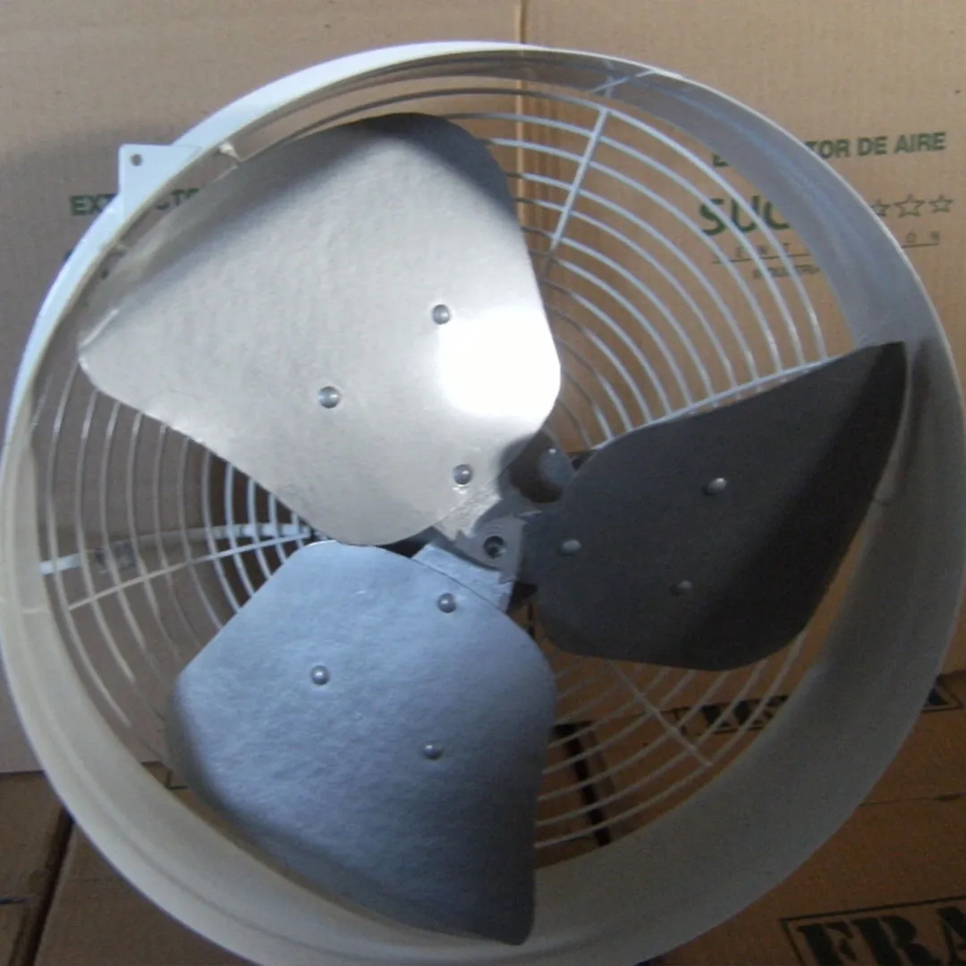 Extractor de pared, de 52 cm de diámetro. La figura de salida de aire es helicoidal, adecuado para extractores de pared industriales. El motor es de t